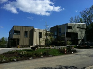 On Friday we visited the Overlook Clipper Mill. The community consists of new homes with various architectural styles as well as renovated buildings. The homes incorporate many green elements and were visually exciting. In the photo below you can see one of the duplexes we inspected (Figure 1).